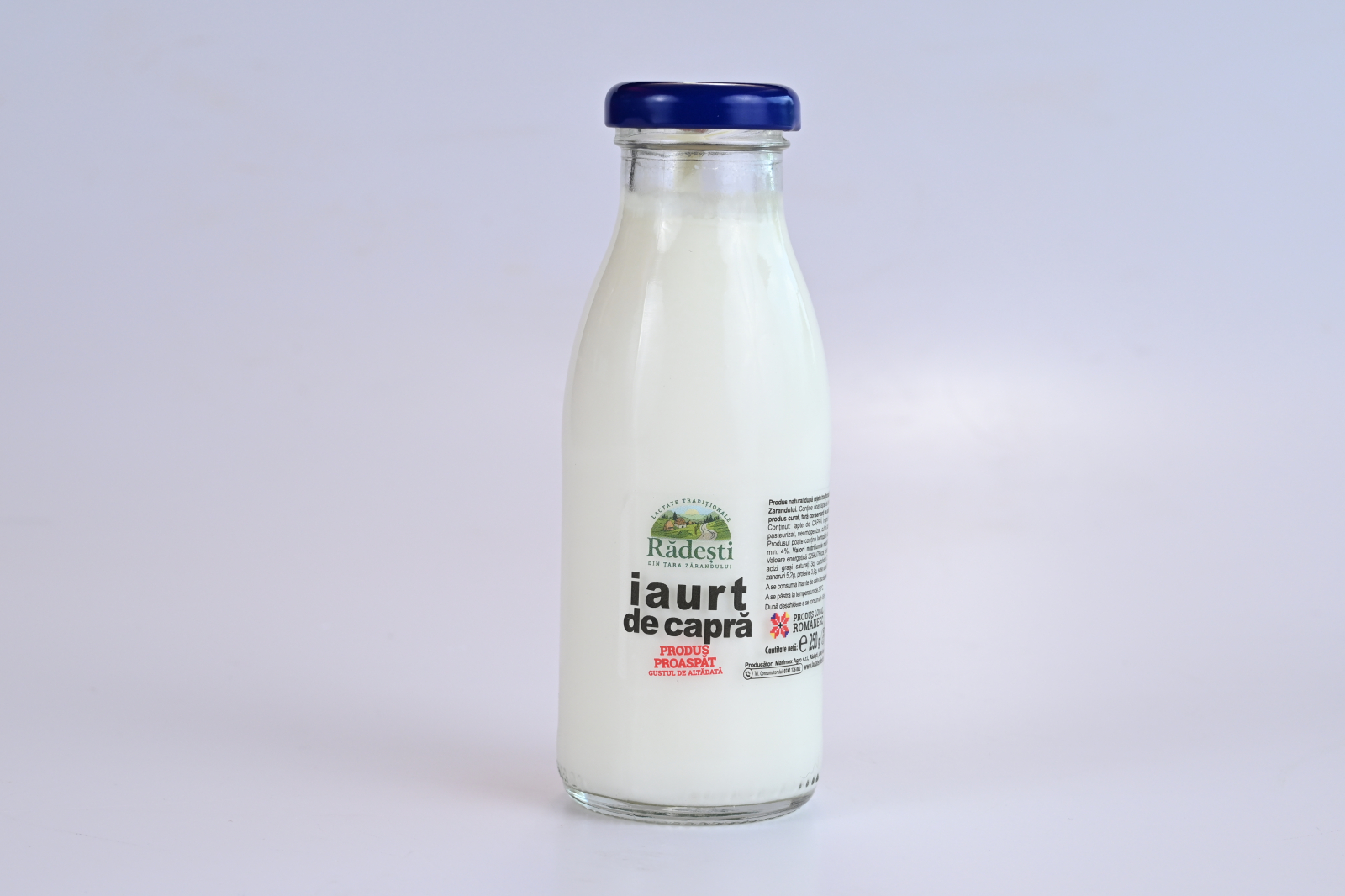 Produs natural după rețeta tradițională din zona Țării Zarandului. Conține doar lapte de la fermierii locali, produs curat, fără conservanți sau aditivi alimentari. Conținut: lapte de VACĂ integral, nesmântânit, pasteurizat, neomogenizat, culturi lactice (acreală) Produsul poate conține lactoză din lapte. Grăsime min. 3.3%. Valori nutriționale medii/100g produs: Valoare energetică 275kJ/66 kcal, grăsimi 3,3g din care acizi grași saturați 2,2g, carbohidrați 4,5g din care zaharuri 4.5g, proteine 3,2g, sarea naturală a laptelui. A se consuma înainte de data înscrisă pe ambalaj.